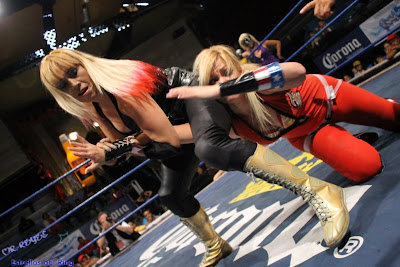 Cinthia Moreno acompañada de Ludark Shaitan vencen en tres caídas a Sexy Lady y Jennifer Blake.